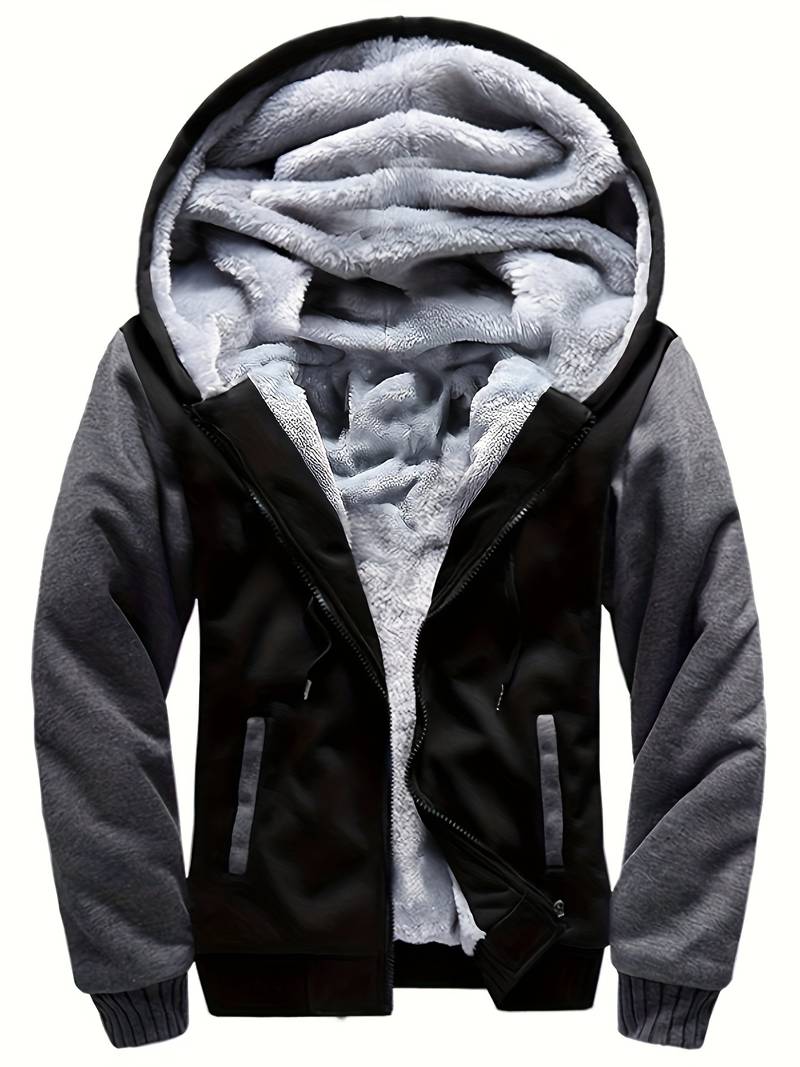 Oziel - Fermuarlı Sıcak Polar Kapüşonlu Ceket
