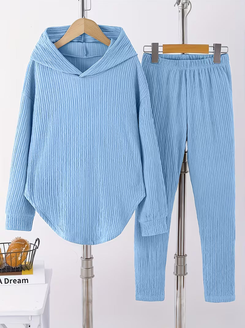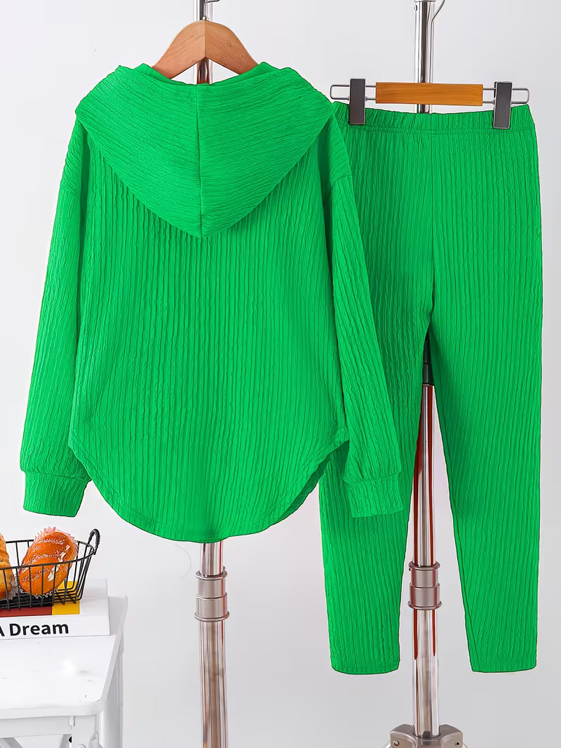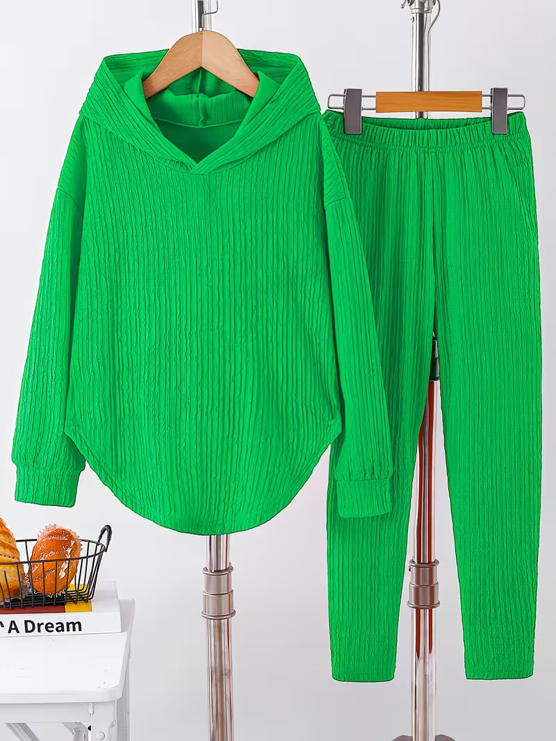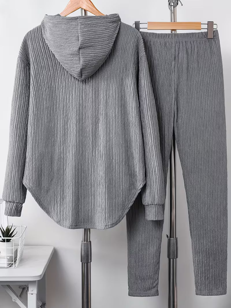 ✅Tamamlayıcı Set Kolaylığı: Bu iki parçalı set, uyumlu kapüşonlu üst ve tayt ile anında bir kıyafet sunar. Giyinirken tahmin yürütmenize gerek kalmaz ve aynı zamanda şık görünürsünüz. Parçaları birlikte giyerek temiz bir set etkisi yaratabilir veya diğer temel parçalarla kombinleyebilirsiniz. Yoğun günler için pratik bir seçimdir.