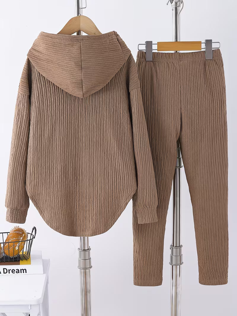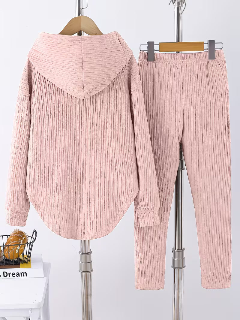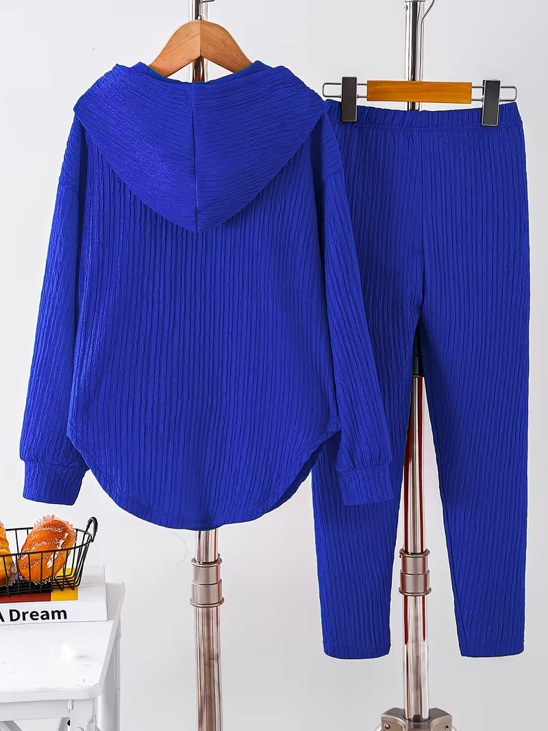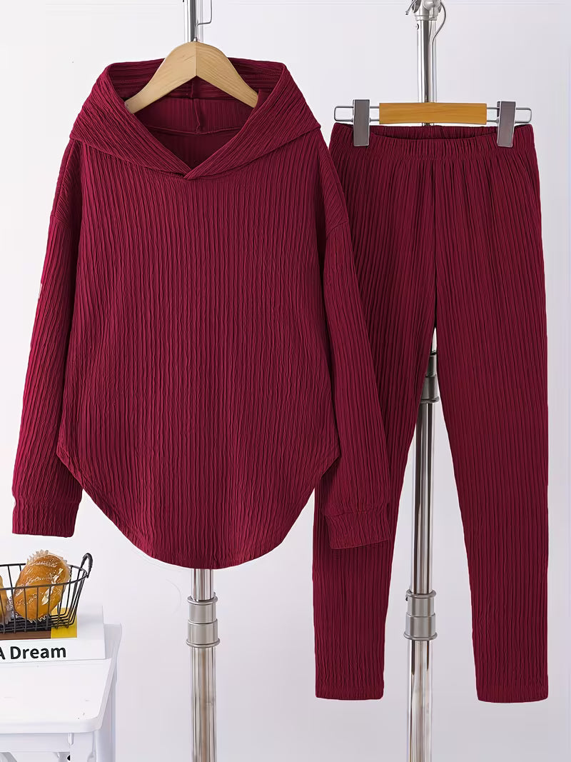 ✅Tamamlayıcı Set Kolaylığı: Bu iki parçalı set, uyumlu kapüşonlu üst ve tayt ile anında bir kıyafet sunar. Giyinirken tahmin yürütmenize gerek kalmaz ve aynı zamanda şık görünürsünüz. Parçaları birlikte giyerek temiz bir set etkisi yaratabilir veya diğer temel parçalarla kombinleyebilirsiniz. Yoğun günler için pratik bir seçimdir.