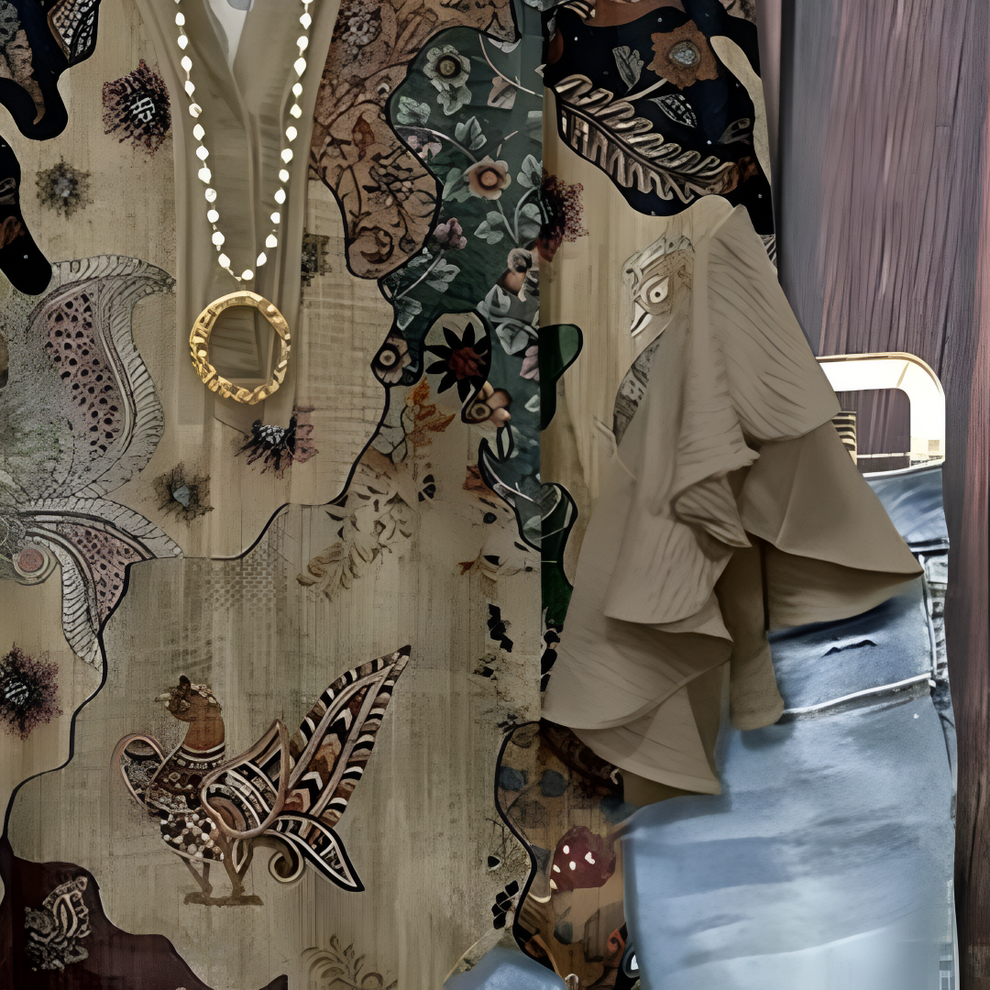 Stilinizi Anında Yükseltir: Bu bluz, her kıyafeti kolaylıkla güzelleştiren zarif bir çekicilik katar. Sanatsal patchwork ve yumuşak akışı, nereye giderseniz gidin zarif bir görünüm yaratır. Gündelik giyimde veya özel günler için şık giyimde kullanabilirsiniz. Gardırobunuza zahmetsiz bir sofistike hava katar.